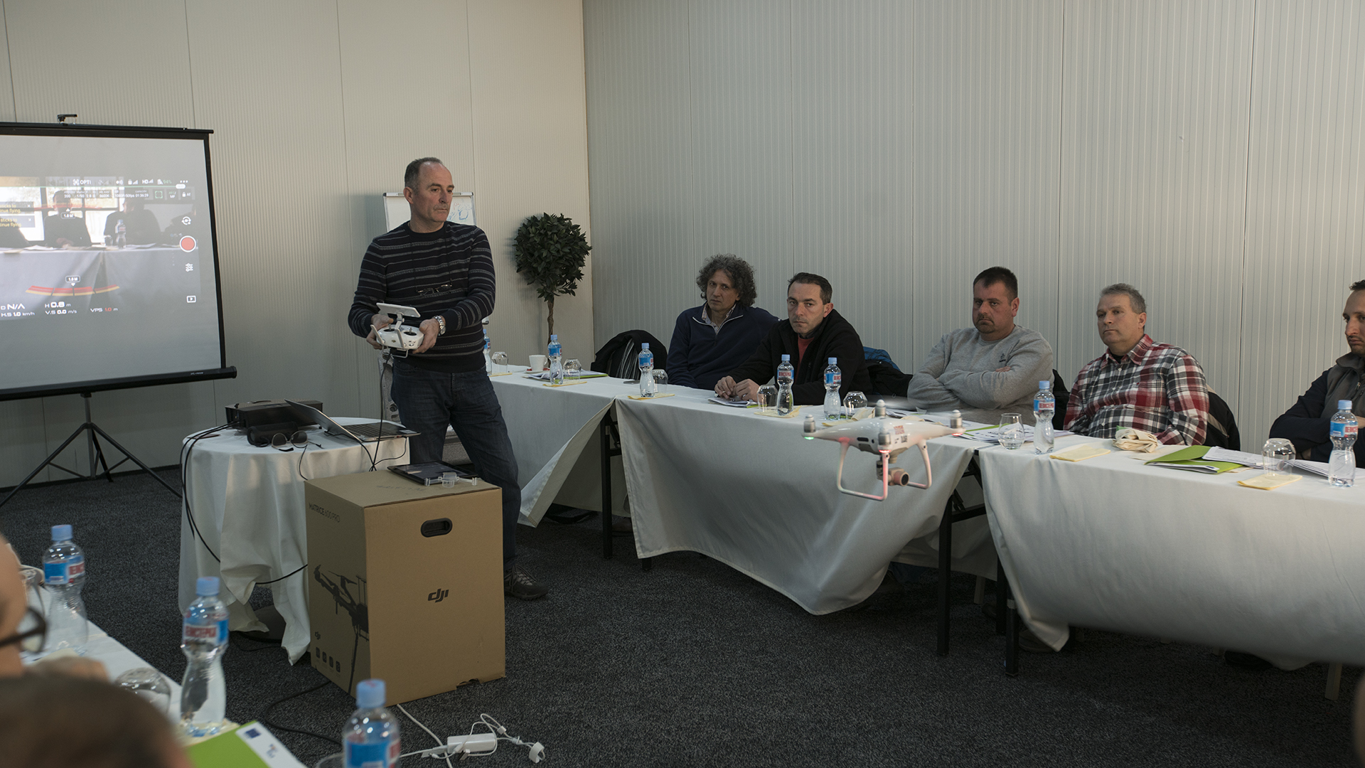 The workshop had 22 participants from different organisations. The practical part of the workshop was done with 12 drones produced by DJi, models Phantom 3, Phantom 4, Phantom 4 Advanced, Phantom 4 Pro v2.0, Mavic Pro, Matrice 600 и S900.
